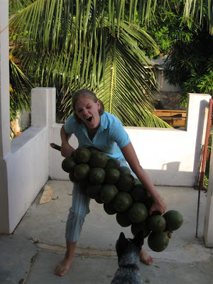 The other day Jason and I were driving back from a village about 2 hours out of Bissau and we saw branches full of fruit for sale. I thought they were coconuts at first, so we stopped to check them out. It turned out that they were not coconuts, but they were a related fruit called “ankol”. The entire branch was only $2, and the people selling it assured us that it was quite good, so I thought, why not? We threw the branch in the back of the truck and got back on the road.